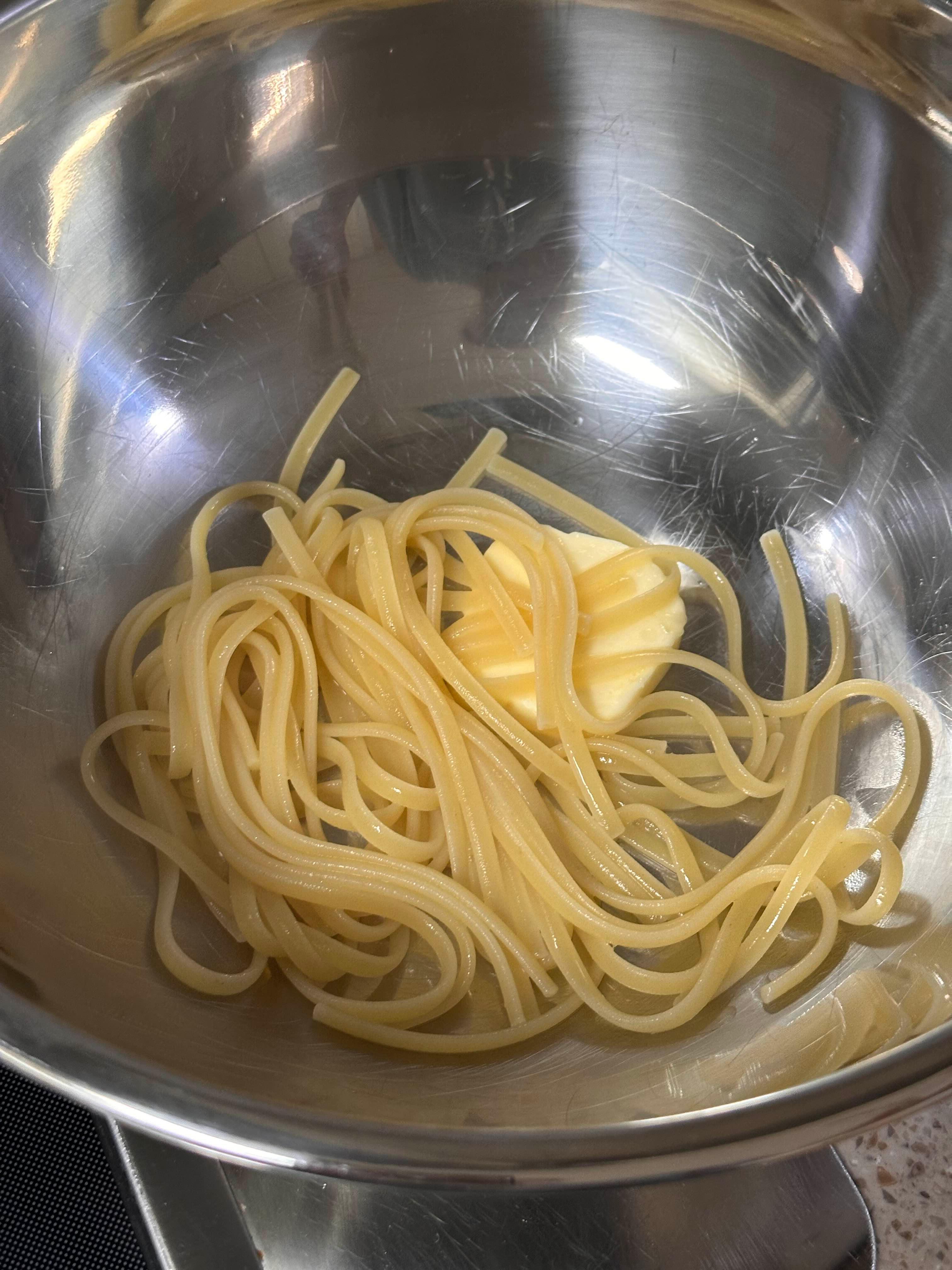 (면이 익으면 볼에 담아서 버터와 비벼줘야 하니 넉넉한 크기의 볼을 사용해 주세요.)