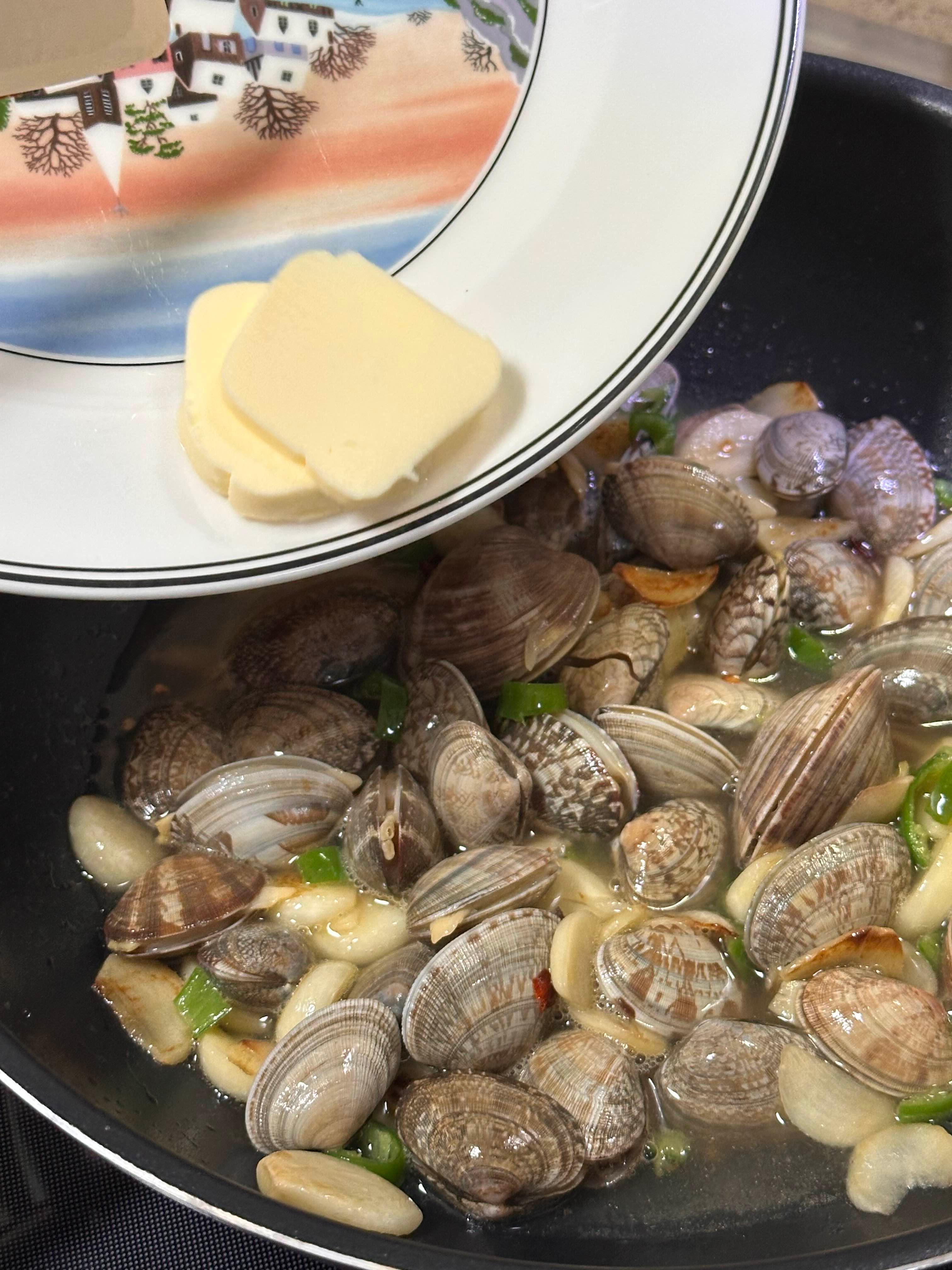 5분 후 뚜껑을 열면 바지락이 입을 활짝 벌리고 있을 거예요.
