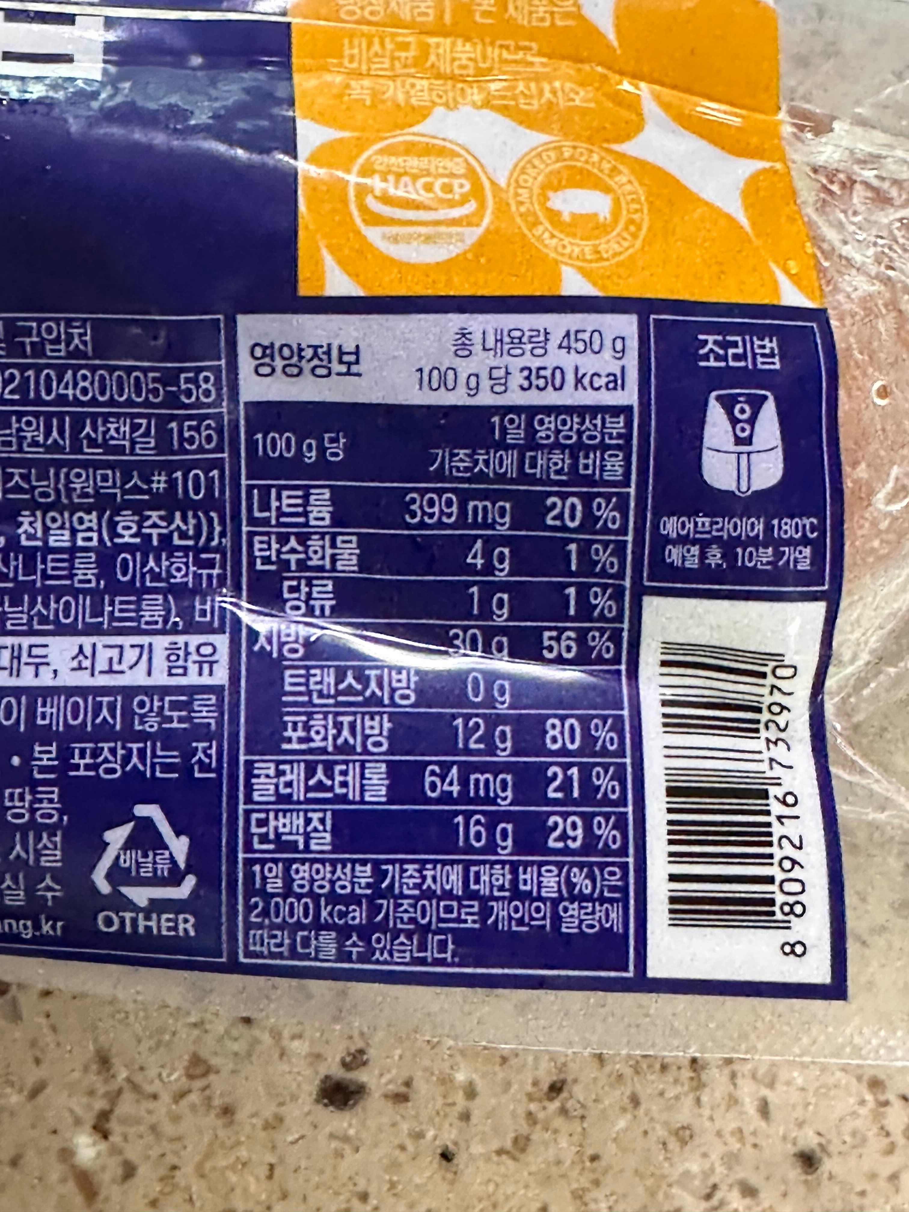 훈연 분말, 천일염, 후추, 정제소금 등으로 간이 되어 있어 따로 양념 없이도 맛있게 먹을 수 있고요.