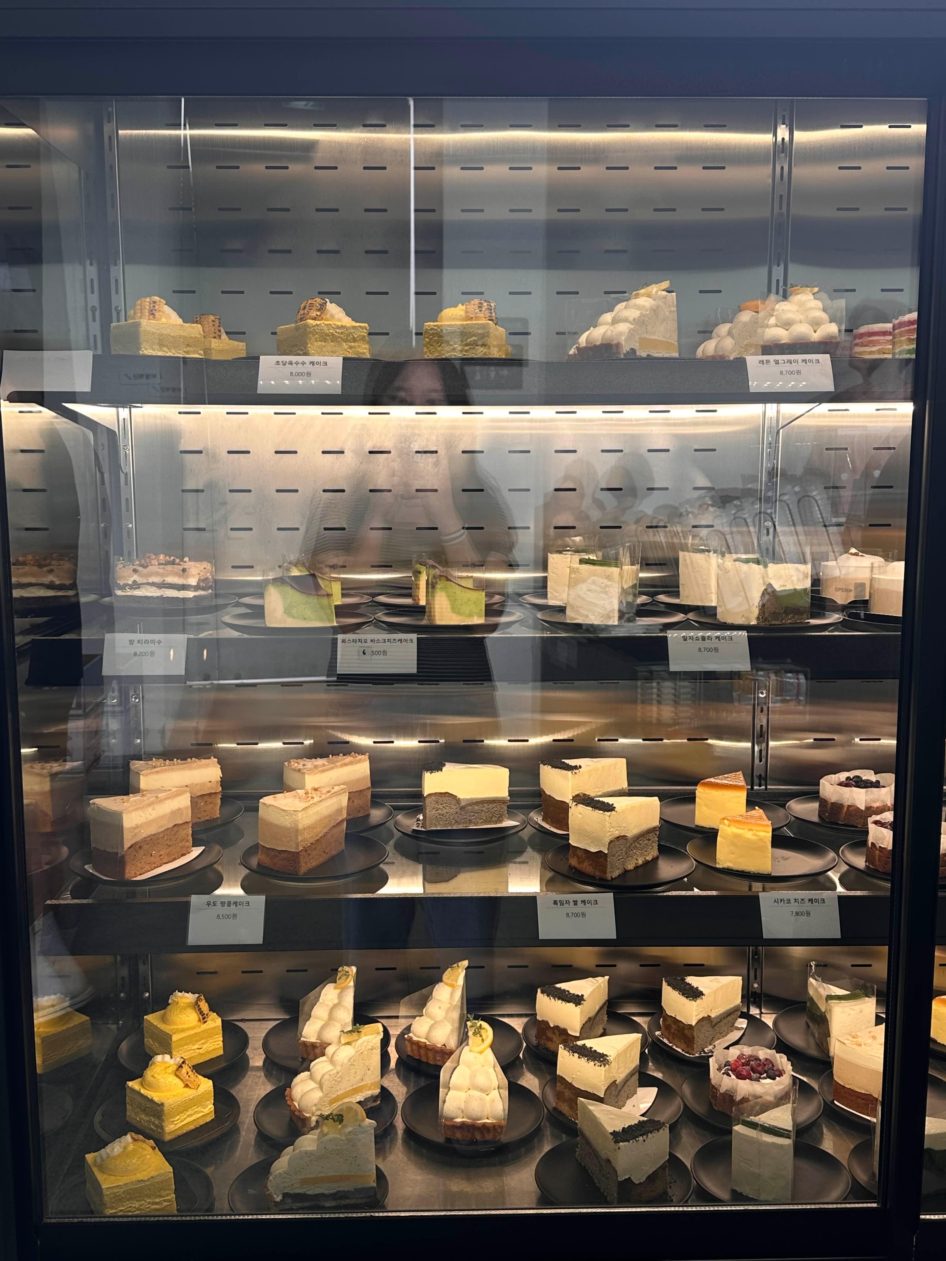 쇼케이스 안에는 케이크, 타르트등 보기만 해도 기분 좋아지는 비주얼의 디저트들이 가득했습니다.