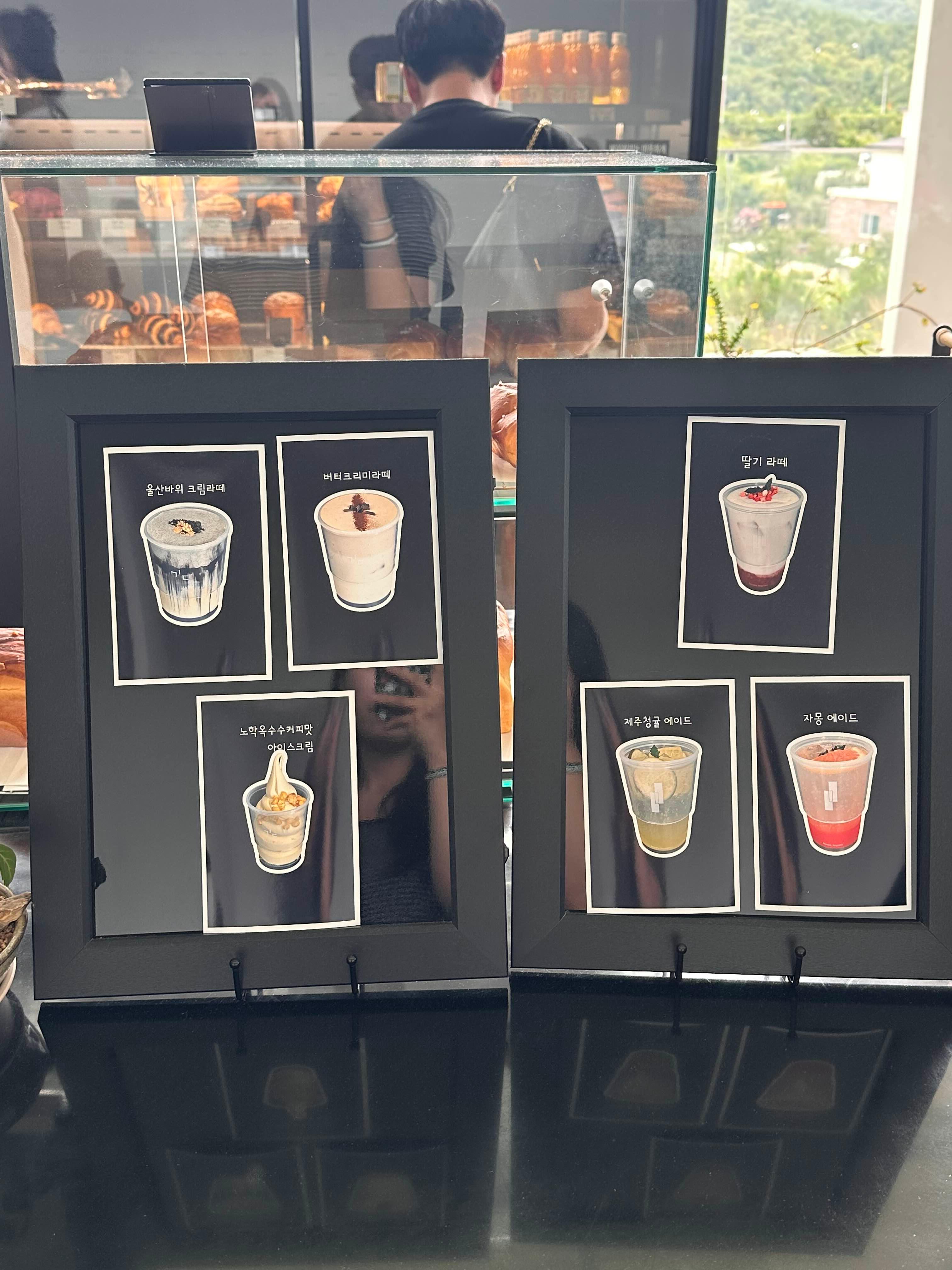 주문하는 곳 맞은편에 카페 긷의 시그니처 메뉴로 보이는 음료 사진이 있었어요.