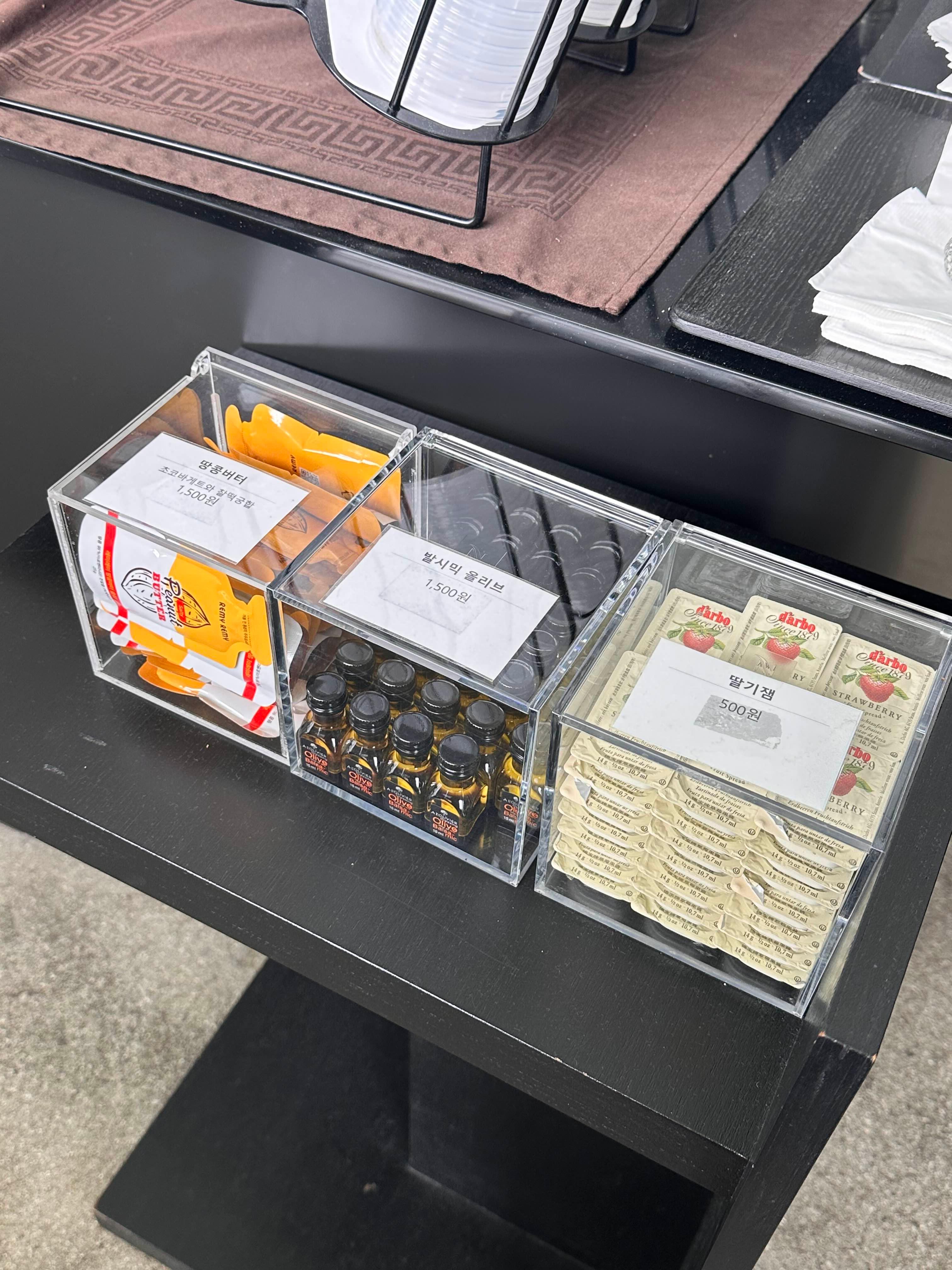 땅콩버터와 발사믹 올리브 그리고 딸기잼도 따로 판매하고 있었어요.