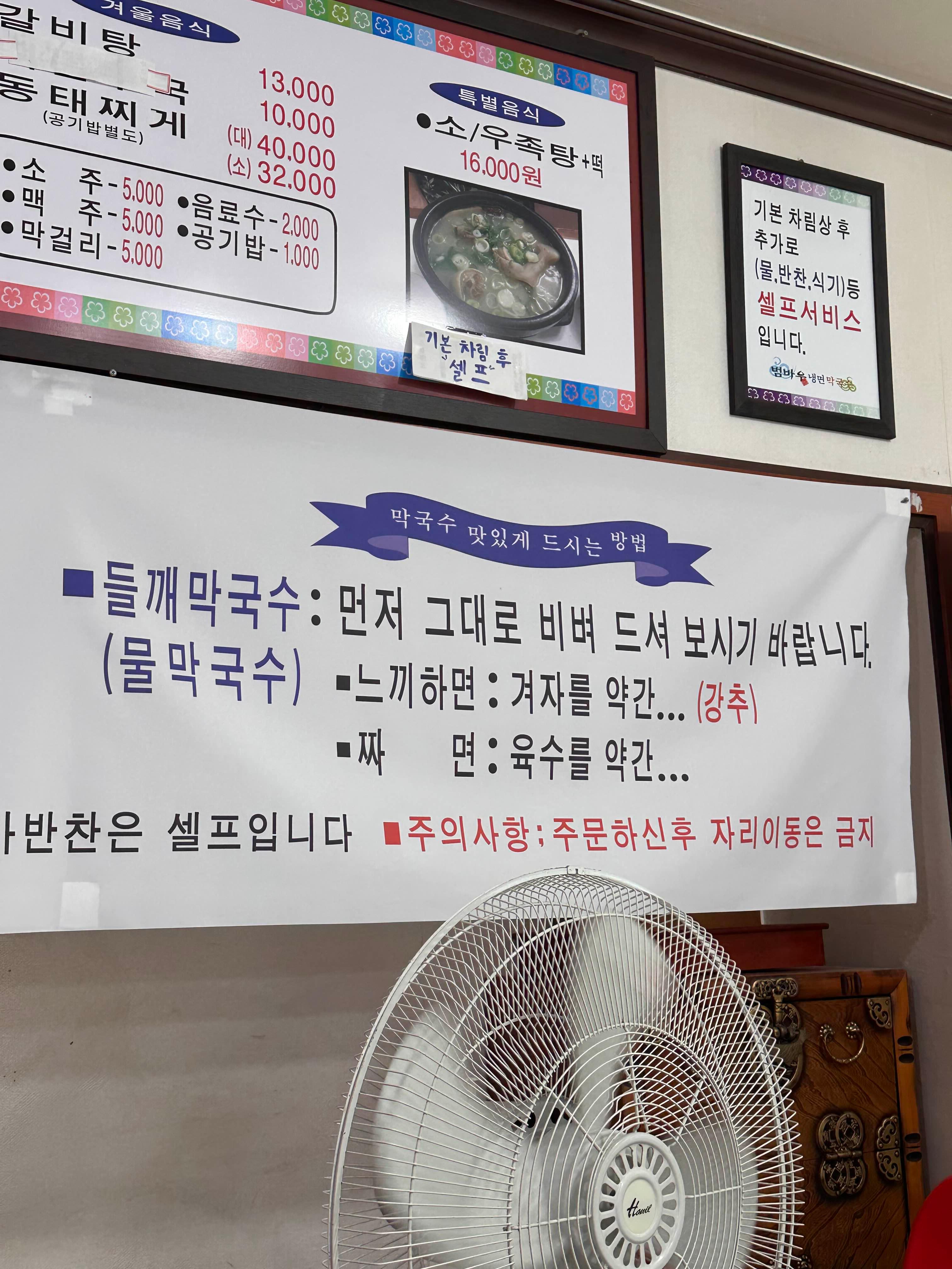 가게 벽면에 들깨막국수 먹는 방법이 안내되어 있으니, 한 번 따라 해 보시면 좋을 것 같아요.