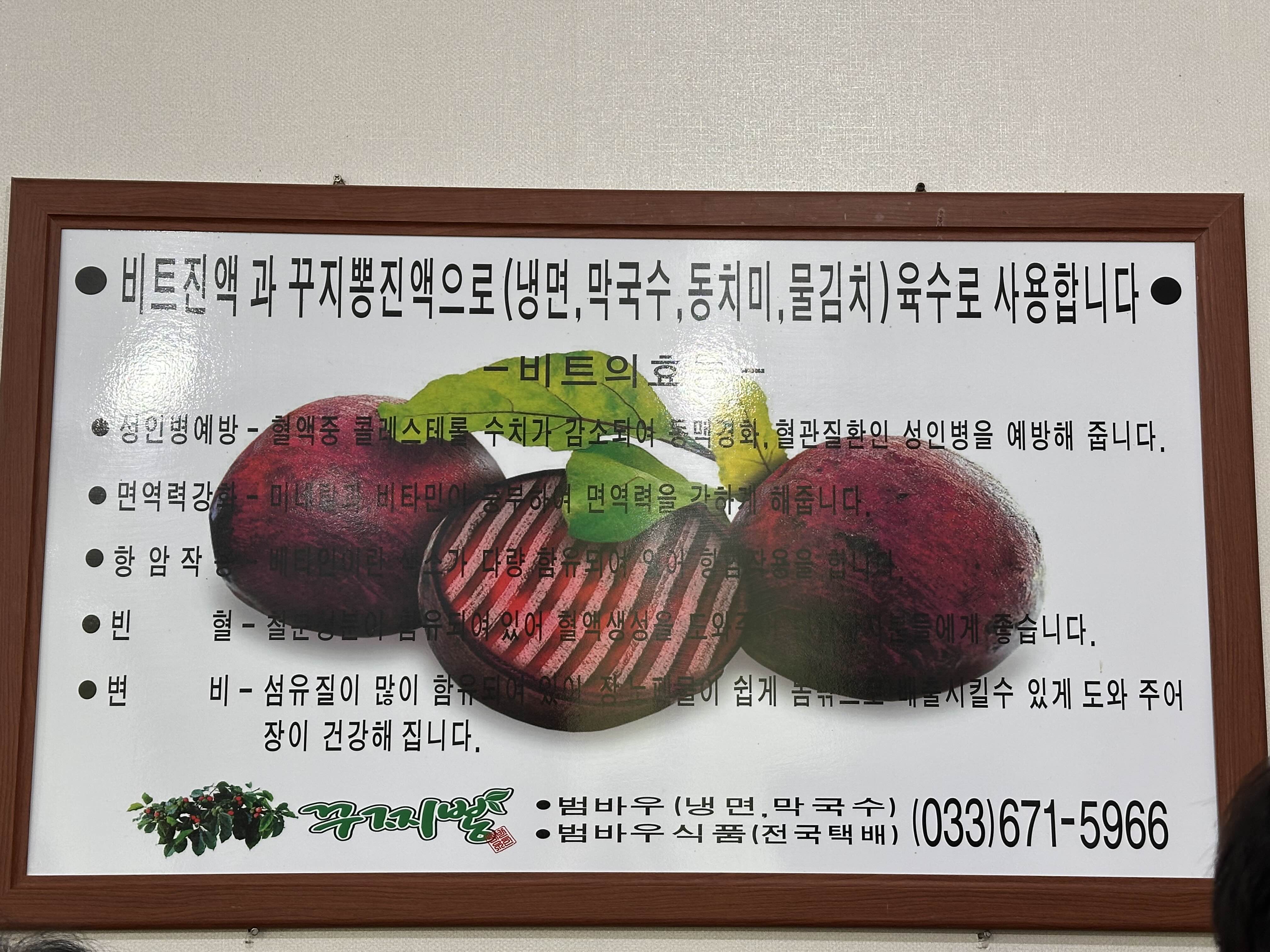 막국수 육수는 비트 진액과 꾸지뽕 진액으로 만들어졌다고 해요.
