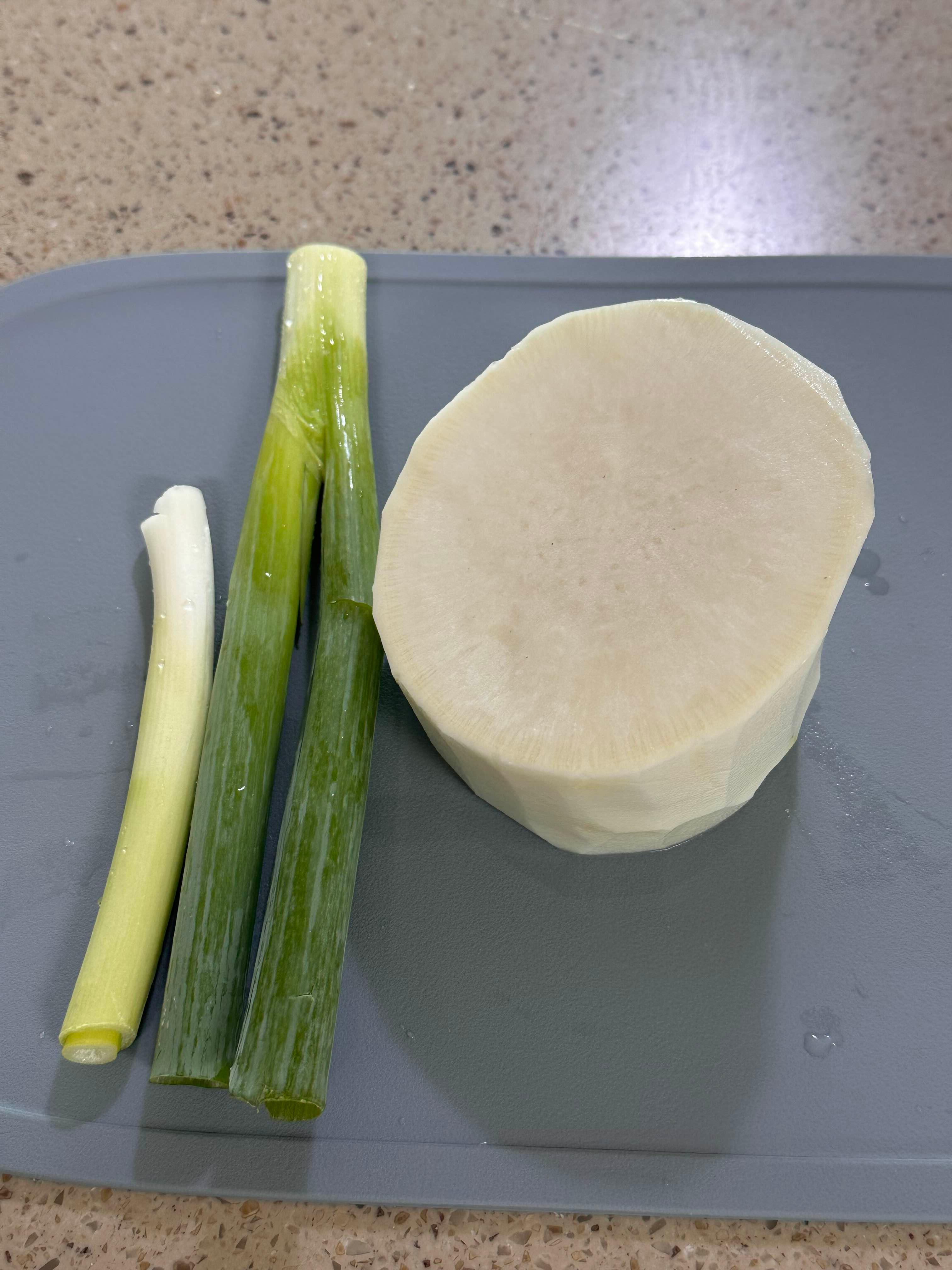 파 한 대와 무 400g을 준비해 주세요.