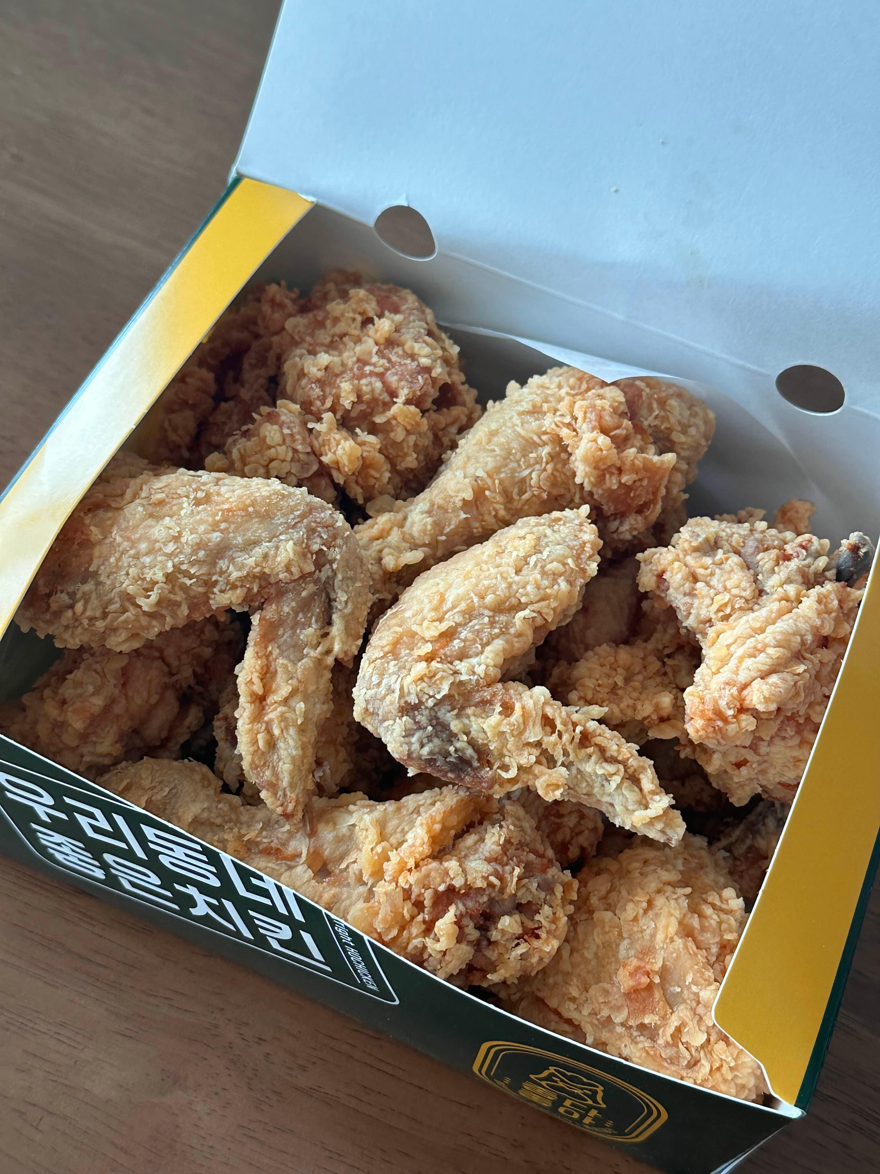 다른 치킨집에 비해 간이 다소 약하게 느껴질 수 있어, 소금이나 소스를 곁들여 찍어 드시는 것을 추천해요.