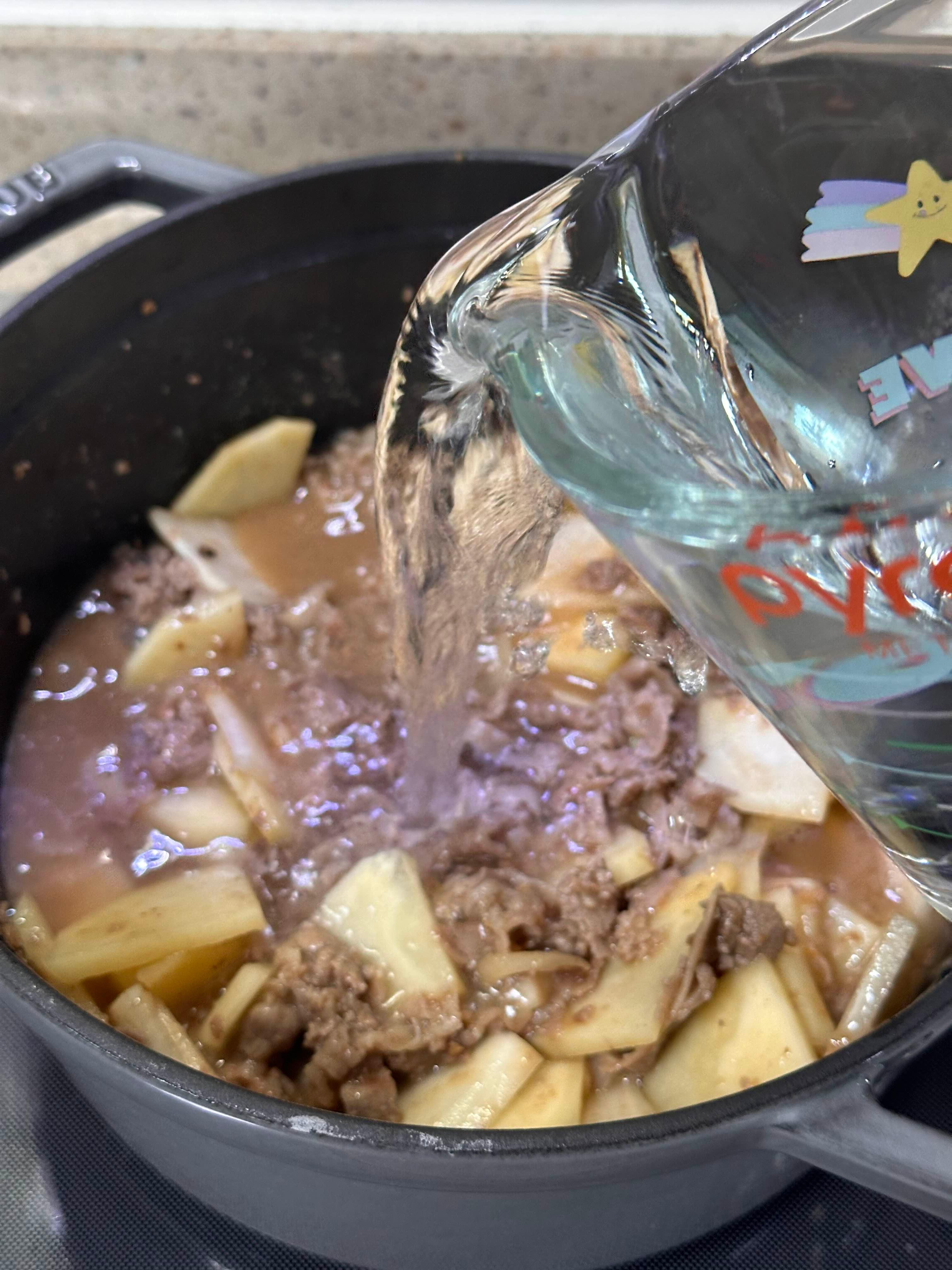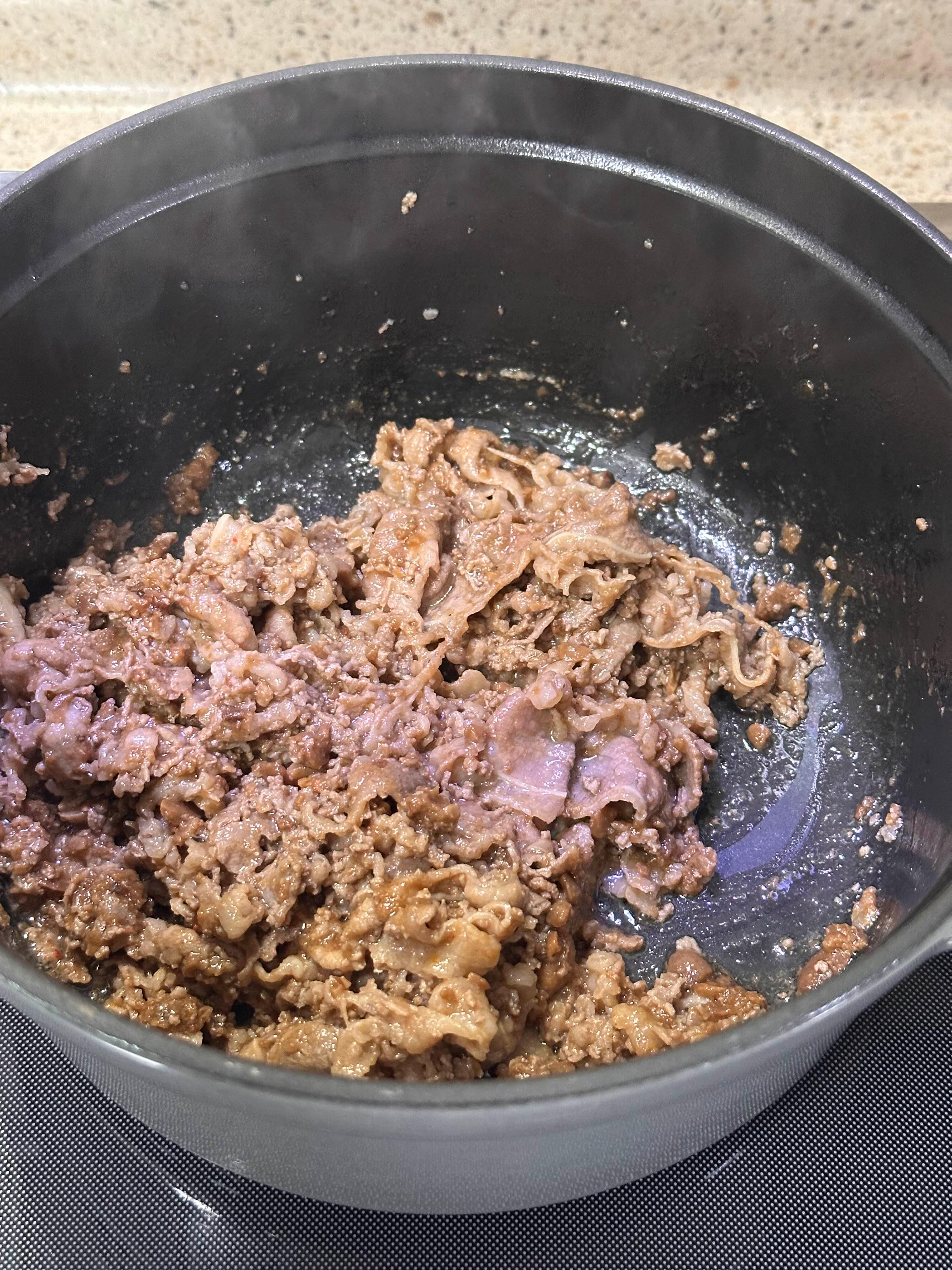 고기가 겉면만 살짝 익을 정도로 볶아주면 국물 맛이 한층 깊어져요!