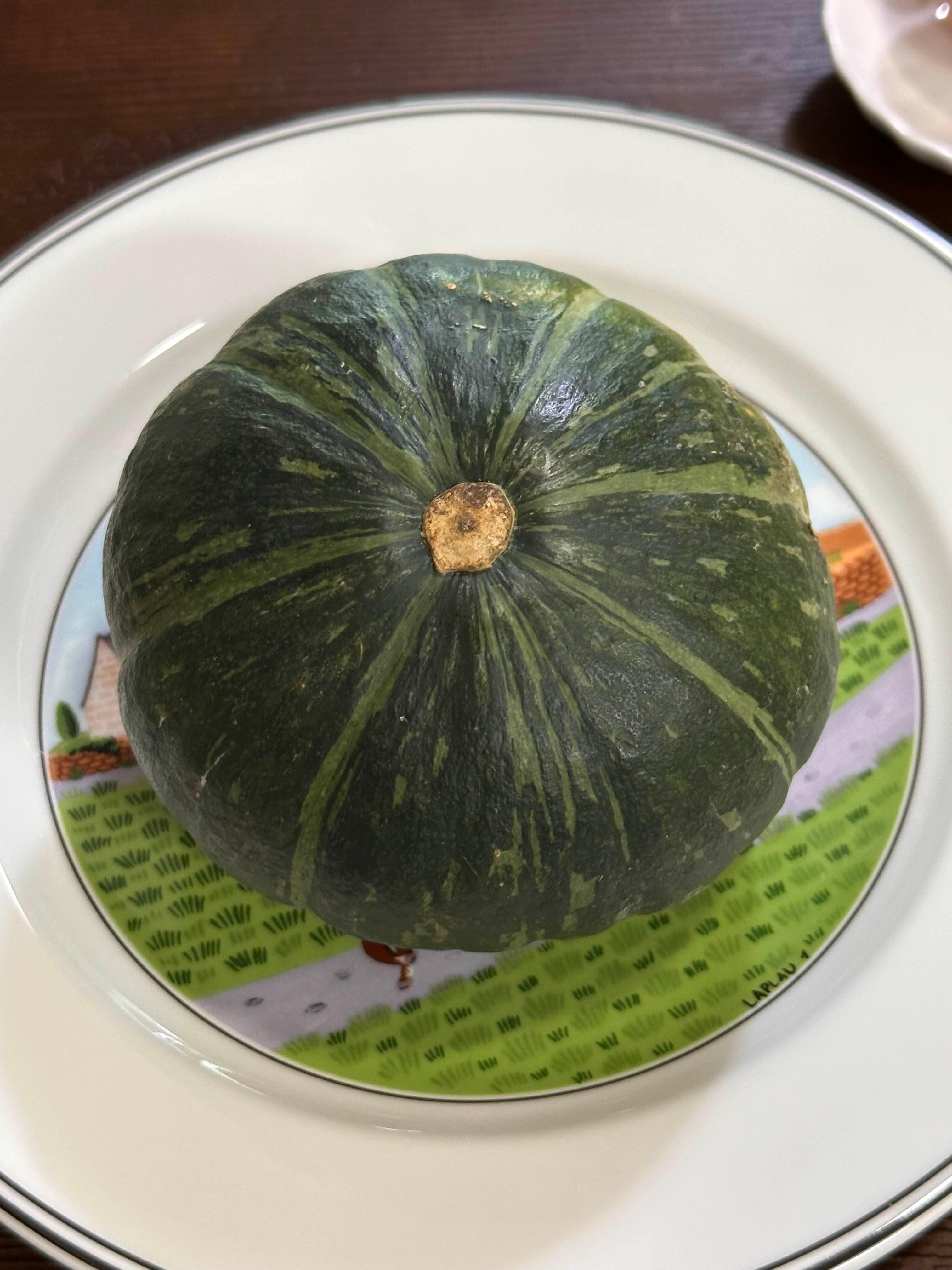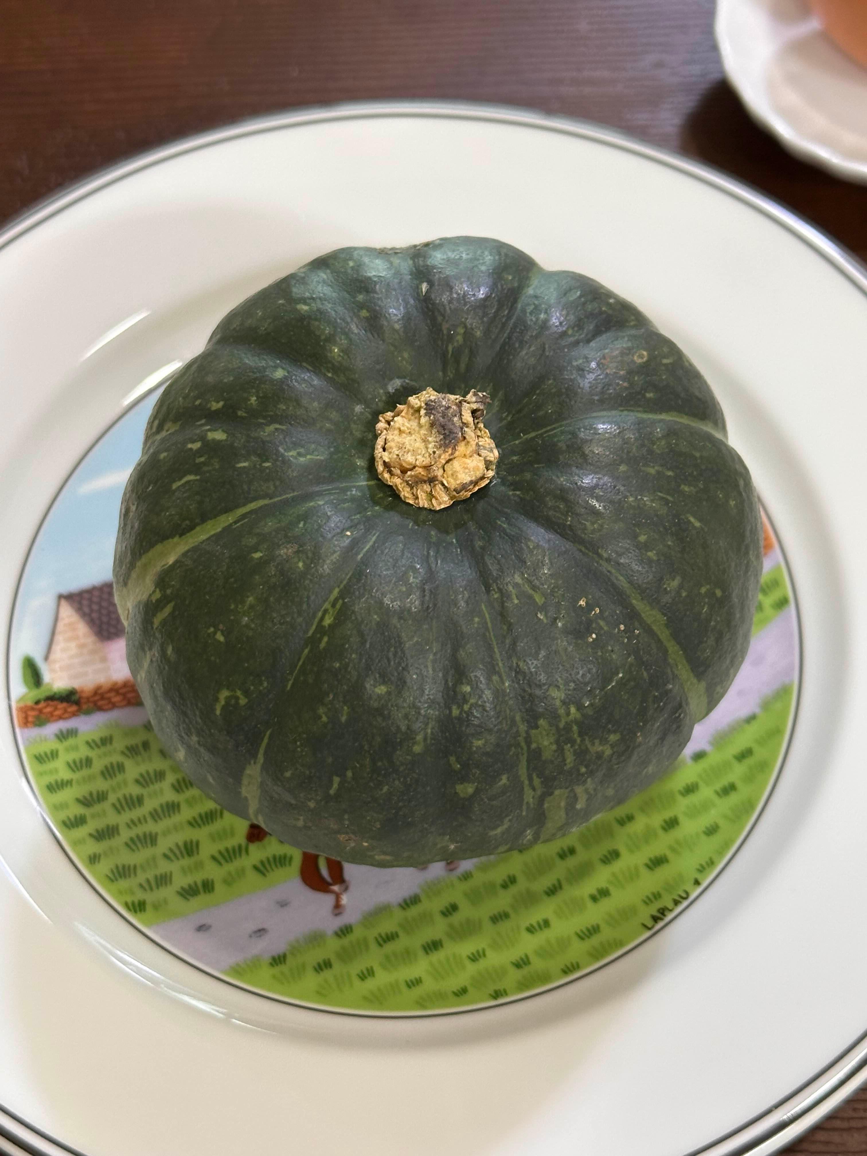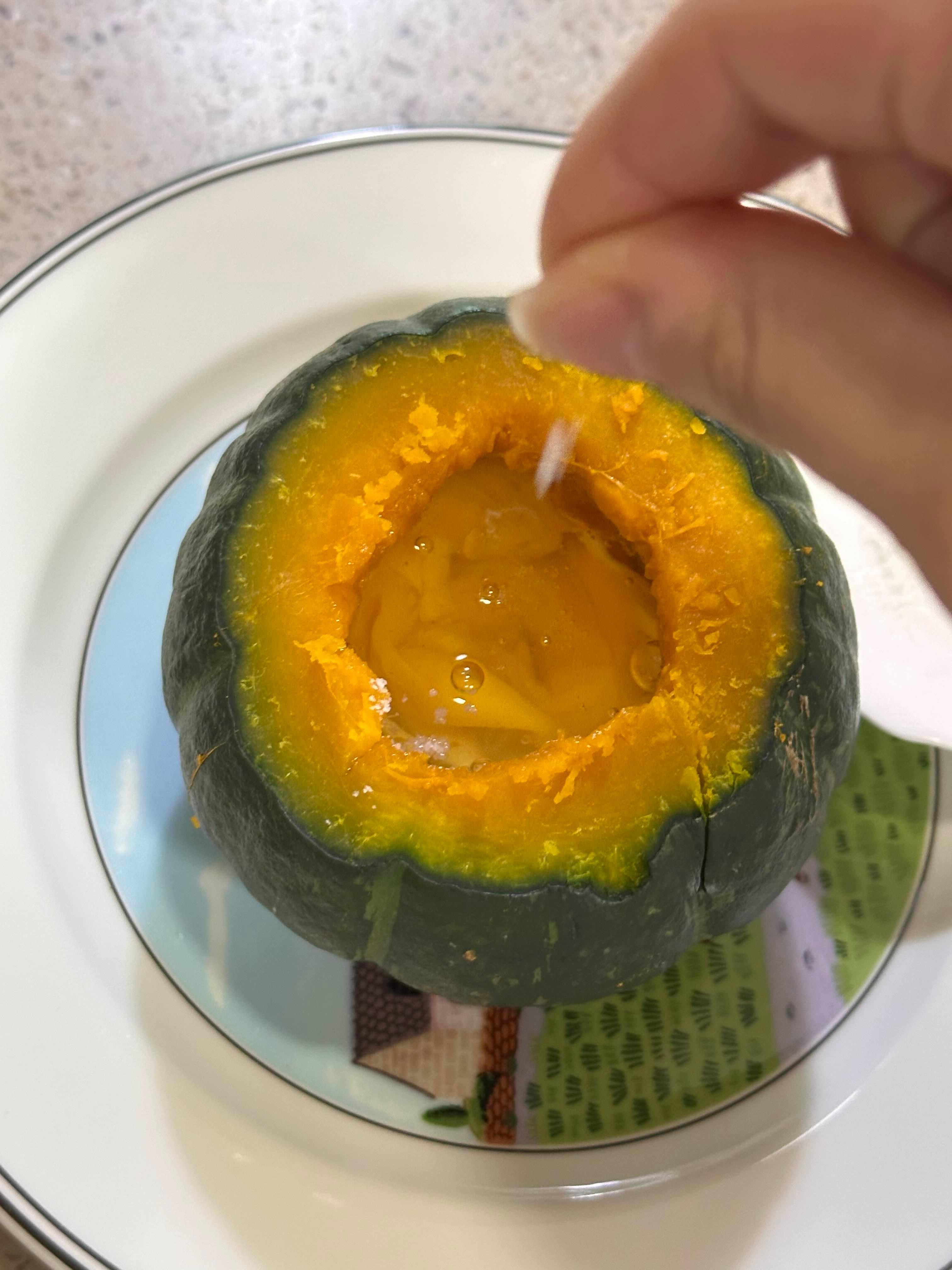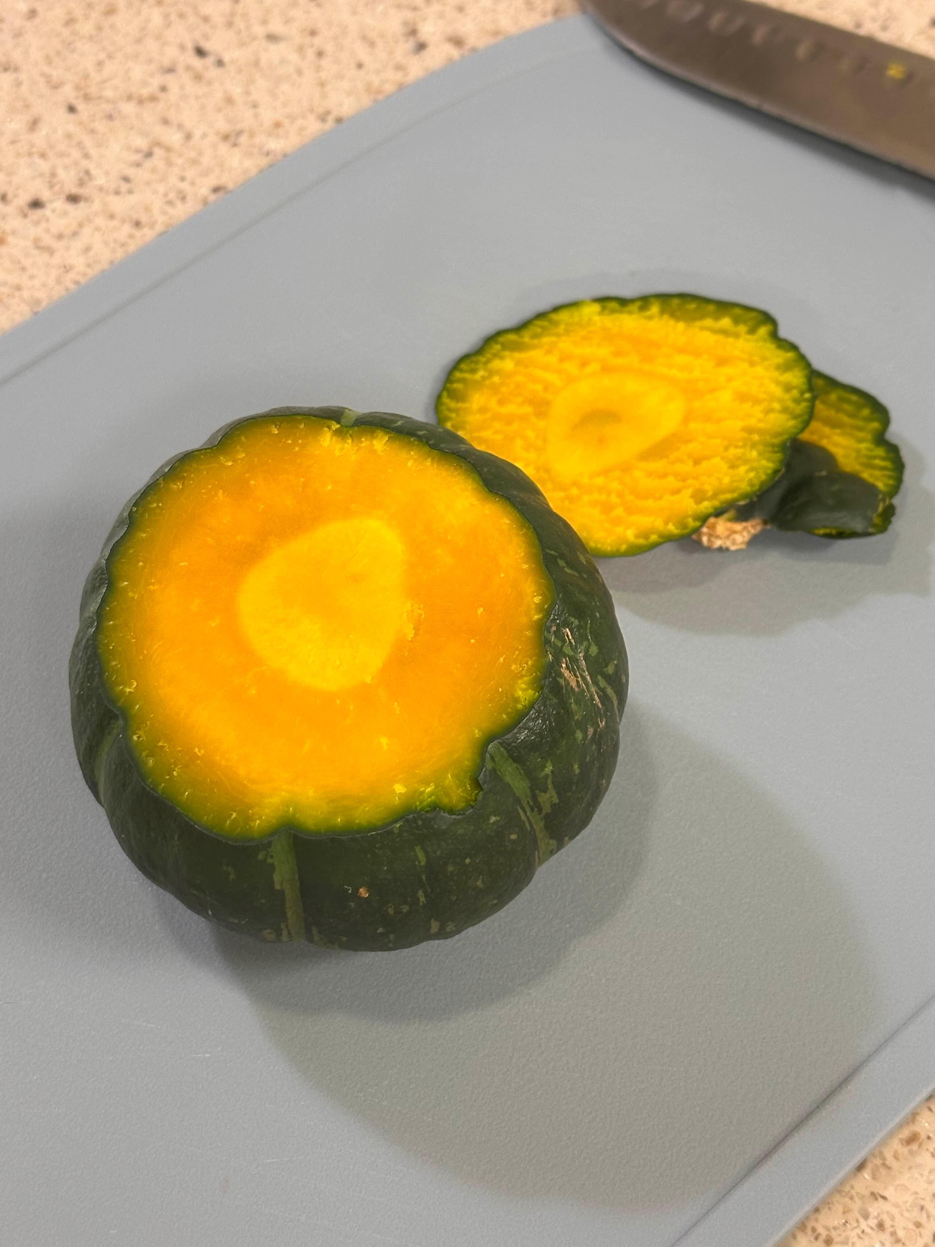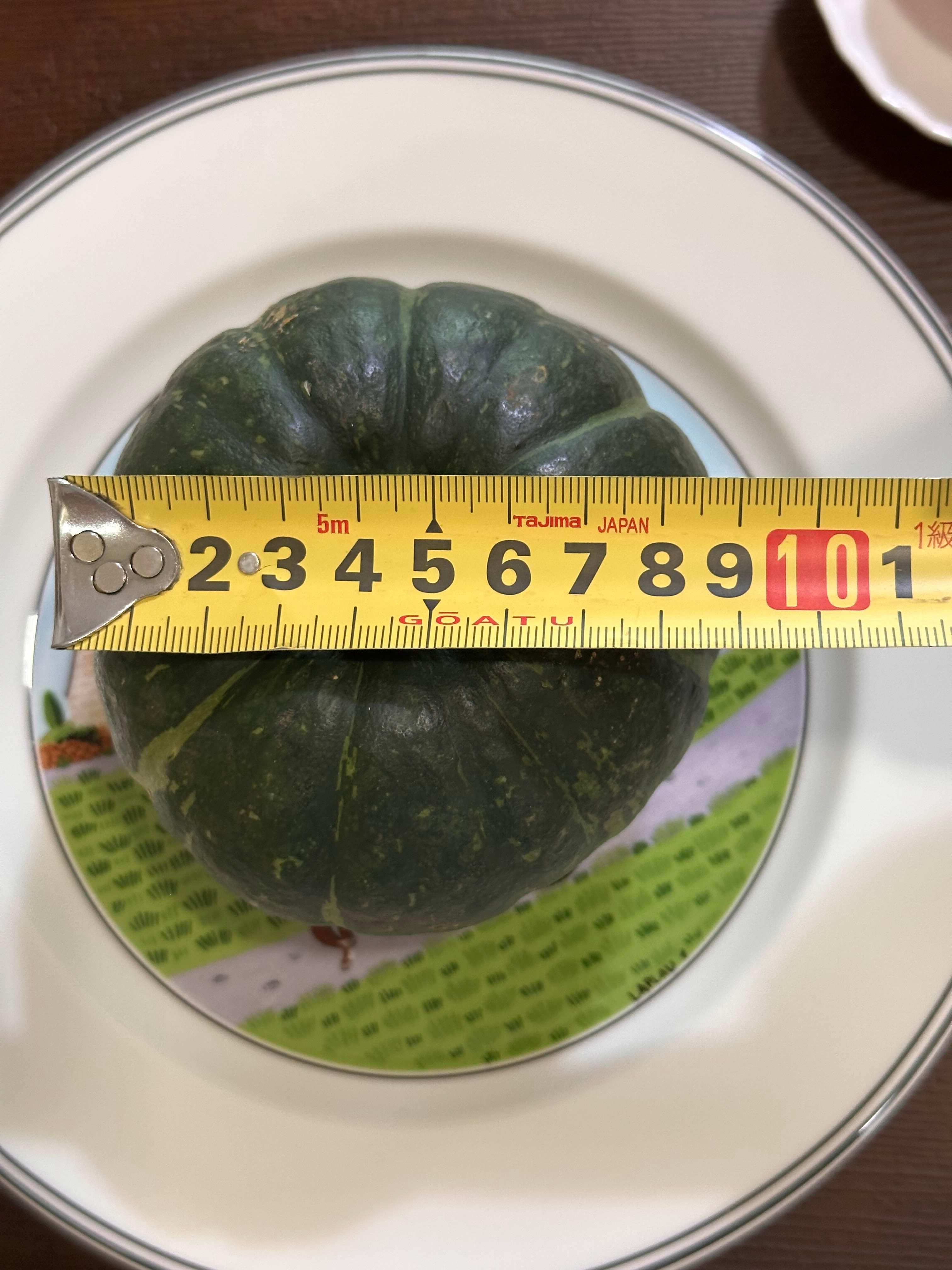 지름을 재보니 약 9cm 정도로, 한 손에 쏙 들어오는 미니 사이즈의 단호박을 사용했습니다.